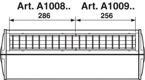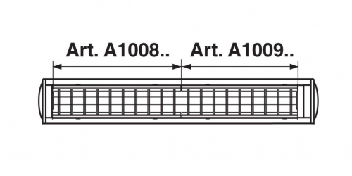 Gli articoli che montano 1 lampada da 14 o 24W sono composti da 2 moduli di cui 1 modulo art. A1008.. (mm 286) e 1 modulo art. A1009.. (mm 256).