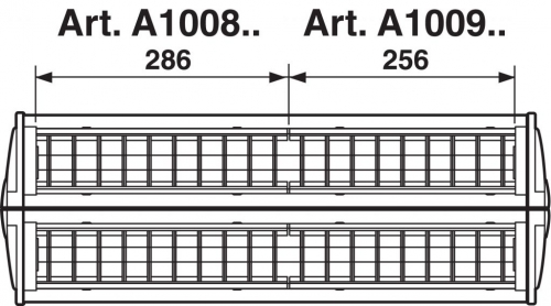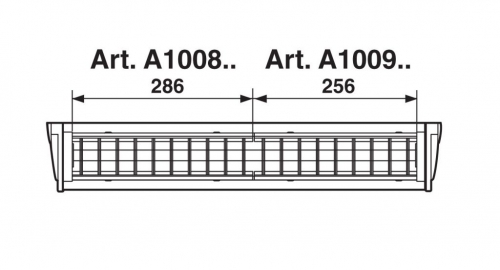 Gli articoli che montano 2 lampade da 14 o 24W sono composti da 2 moduli di cui 1 modulo art. A1008.. (mm 286) e 1 modulo art. A1009.. (mm 256).