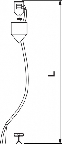 Completo di accessori per fissaggio a sospensione senza necessità di rosone: 2 fili di acciaio; 2 cilindretti di acciaio per fissaggio a soffitto; 2 morsetti blocca cavo per regolazione millimetrica dell'altezza; 2 ganci di acciaio per l'attacco all'apparecchio