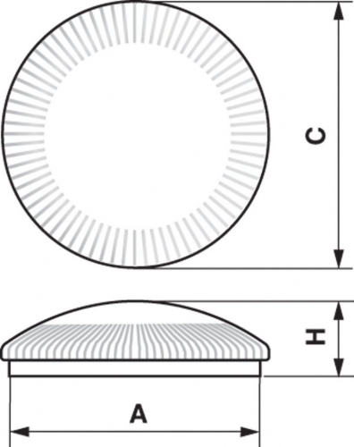 Base in self-extinguishing V2 polycarbonate, unbreakable, UV resistant white colour for Ø 265 and Ø 365 versions. In white thermoplastic material for Ø 455 version.