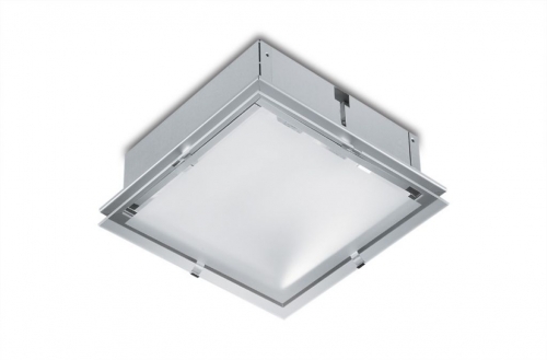 Corpo in lamiera di acciaio zincata prerivestita di colore bianco o grigio, completo di accessori per fissaggio su controsoffitti in cartongesso.