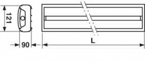 Apparecchio monolampada a luce diretta per lampade T5 con schermo piano opale.