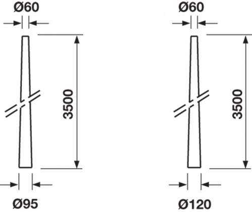 | Polo in vetroresina troncoconico di colore nero (NE) o grigio (GR). |