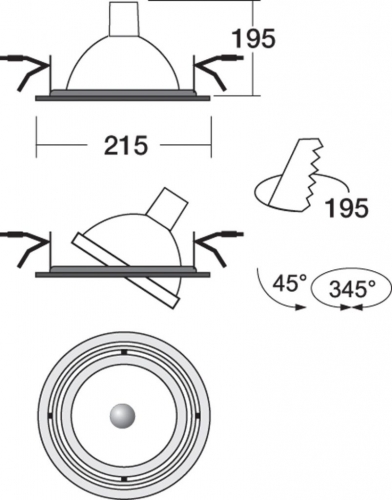 Downlight for metal halide lamp direct light (fixed or adjustable) with protection glass. |