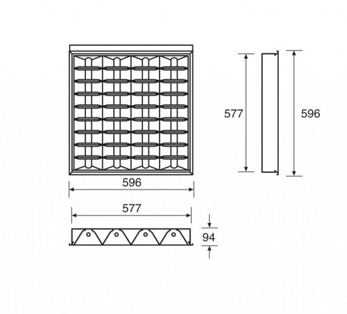 | Ottiche: dark light parabolica antiriflesso in alluminio 99,9% anodizzato lucido speculare (L) oppure ottiche in alluminio lucido con lamelle rigate (D). Tutte le ottiche sono fissate al corpo mediante mollette di sicurezza. |