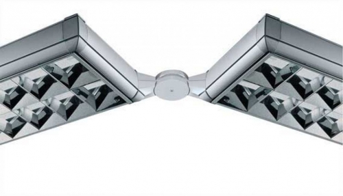 Giunto angolare snodato in ABS applicabile a tutte le plafoniere del sistema “9000” per la realizzazione di varie composizioni.