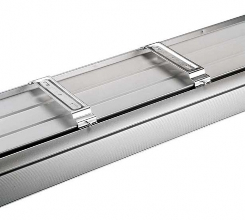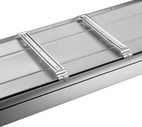 Completo di accessori per fissaggio a soffitto plafoniere sistema “9000” larga mm. 300; 2 staffe per confezione.
