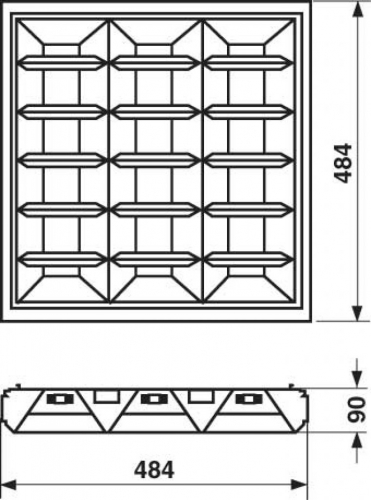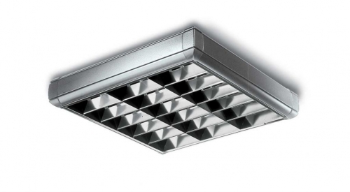 Ottica parabolica dark light antiriflesso in alluminio 99,9% anodizzato satinato, caratterizzata da alto rendimento, antiridescenza, luminanza < 200 cd/m2 per angoli > 65° trasversali e longitudinali (EN 12464-1).
