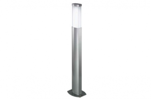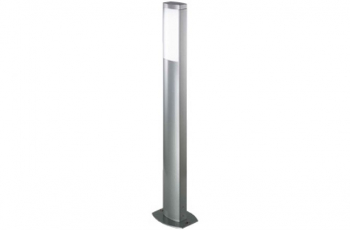 Paletto da esterno in alluminio verniciato grigio per lampade fluorescenti compatte, in versione a luce omnidirezionale o frontale.