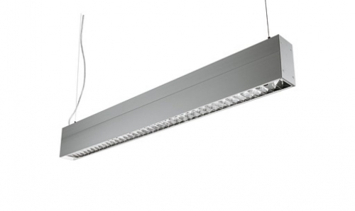 Apparecchio bilampada in alluminio estruso a luce diretta/indiretta con ottica dark-light a bassa luminanza (conforme alla norma EN 12464-1), cablato in doppia accensione. |