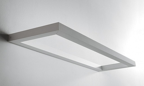 Apparecchio monolampada in alluminio estruso a luce riflessa, per installazione a parete.