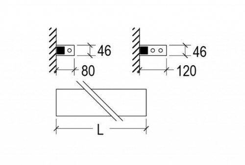 Apparecchi in alluminio estruso a luce mista diretta/indiretta installabile solo a mensola con schermo opale.