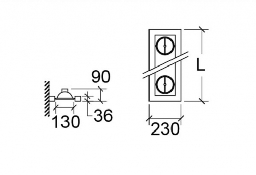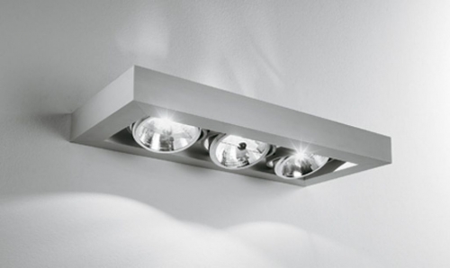 Apparecchio in alluminio estruso per lampade alogene QR111 orientabili installabile a parete.