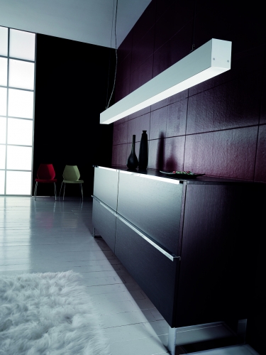 La serie “Julia” è costituita da apparecchi di illuminazione monolampada fluorescente T5 che può essere installata a sospensione o a parete, singolarmente o come sistema, anche in versione con sovrapposizione dei tubi fluorescenti.