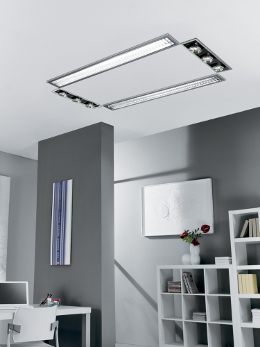 La serie “Silver” da incasso è finalizzata all’impiego di lampade fluorescenti T5 e alogene QR 111 e adatta all’installazione su controssoffitto in cartongesso.